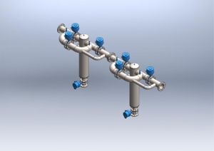 Данный фильтр встраивается непосредственно в трубу. Фильтр обеспечивает предварительную очистку жидкости. Встраивание фильтра непосредственно в трубу дает выигрыш в габаритах фильтра. Как видно из рис.2 данный фильтр оснащается автоматической системой управления запорной арматуры для обеспечения его очистки. Производительность данного фильтра определяется диаметром подводящей трубы и может составлять до 10000 м3/час.